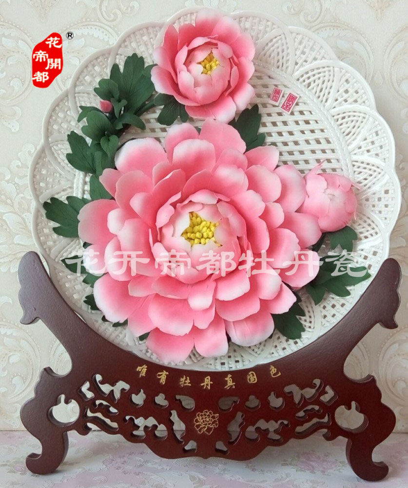 產品系列主要包括:牡丹瓷花盤、牡丹瓷屏風、牡丹瓷盆景、牡丹瓷壁掛和牡丹瓷鼎,形式多種多樣!每一件作品都是藝術的結晶,花、枝、葉均是手工捏制,造型逼真生動。