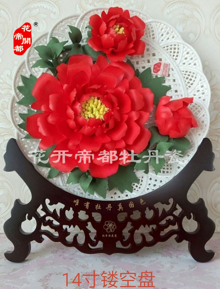 產品系列主要包括:牡丹瓷花盤、牡丹瓷屏風、牡丹瓷盆景、牡丹瓷壁掛和牡丹瓷鼎,形式多種多樣!每一件作品都是藝術的結晶,花、枝、葉均是手工捏制,造型逼真生動。